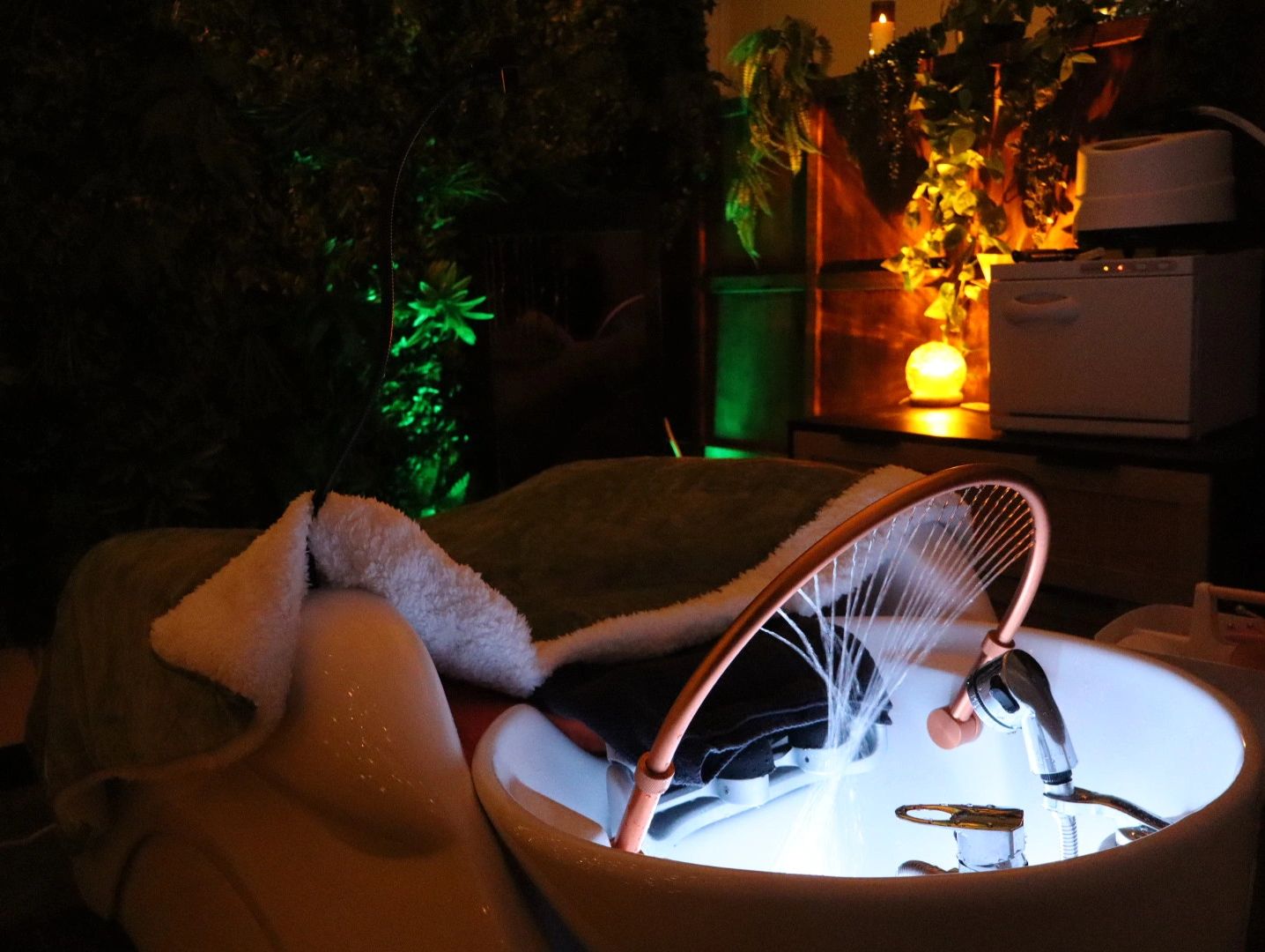 60 Minute Session: Scalp assessment under a microscope. Then relax with a cherry blossom exfoliating scalp scrub, shampoo, and deep conditioning treatment, followed by a soothing scalp massage with stimulating tools. Includes a mini facial with facial massage, hydrating mask, gua sha, and a heated eye mask for ultimate relaxation